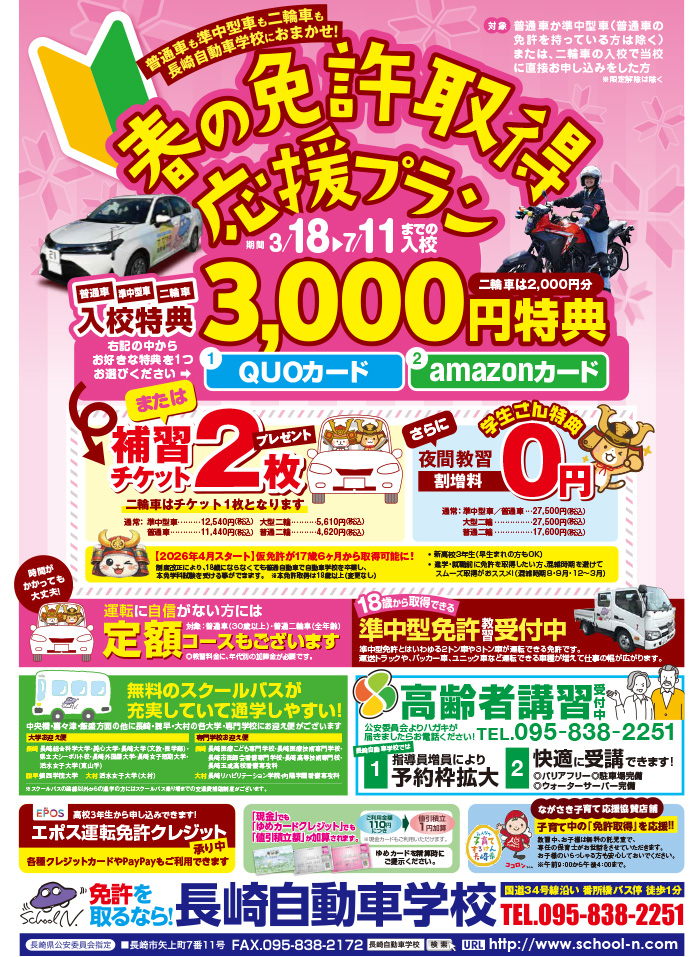 長崎自動車学校Facebookページはこちら!